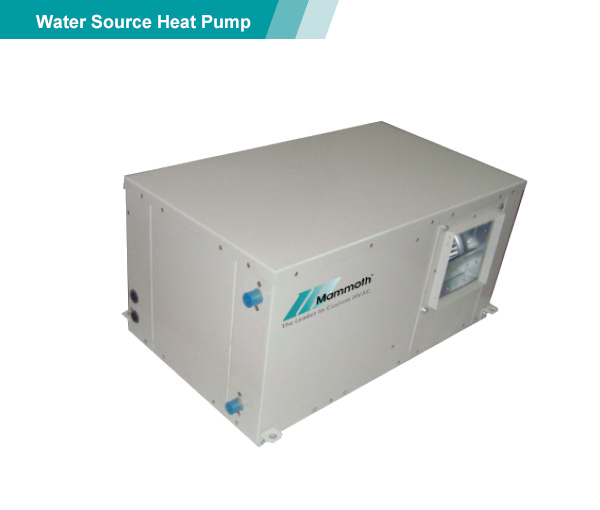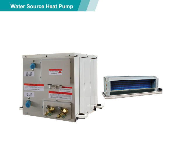 整體式/分離式水源(地下水工況,水環(huán)工況,地下環(huán)路工況)熱泵機組以電作為動(dòng)力,采用系統循環(huán)水,從水井、湖泊、河流、海洋中抽取的水或埋于地下盤(pán)管中循環(huán)流動(dòng)的水為冷(熱)源,經(jīng)室內循環(huán)空氣與室內機熱交換器能量轉移后,送入所需空調房間。